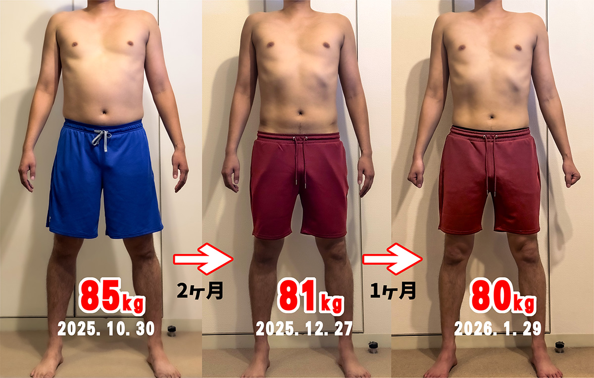 皆さん、こんにちは! 縁ケイです! 昨日は忙しくて節分だったのに気づかず、 すっかり恵方巻を食べ損ねました笑 新年明けたと思ったら、もう2月ですね。 今年の抱負すら決めないうちに 2月になってしまいました。 ですが、今ようやく抱負を決めました。 それは 「ブログの更新頻度を上げること」 です。 達成できるかどうか見守っててください笑 ・たくま君、肉体改造中 さて、今回は新人たくま君についてです。 182cmの長身たくま君ですが、 体重も85kg(入店時)あり、 大木のようにどっしりした印象でした。 細枝のような僕とは大違いです笑 そんなたくま君ですが、もともとは 運動量が多くスリム体型だったのに、 去年までしていた仕事で生活が乱れ、 太ってしまったとのこと。 そこで入店当初から、「また痩せたい」と 話していました。 なるほど。 それは好都合。 何故なら、ウチはエステだからです。 忘れている方が多いと思いますが笑 そう、ウチには引き締めコースや ダイエットコースもあります。 当店のLINEアカウントではもう9年近く ダイエット情報を発信していますし、 僕のインスタグラムアカウントでも、 ダイエット情報の発信を再開しました。 依頼が増えても対応できないので、 あまりアピールしてないのですが、 こう見えて僕はダイエットの プロフェッショナル。 開業から10数年、僕の体型が あまりにも変わらないので 太らない体質だと思われがちなのですが、 実は計算づくで体型を維持しています。 そもそも、僕は肥満児でしたから笑 そんな僕の手にかかれば、 痩せるのなんて簡単!(大きく出た笑) という訳で、たくま君のダイエットが 始まりました。 ま、あれこれ言うより、 写真を見てもらうのが早いですよね。 たくま君の3ヶ月の変化をご覧ください(^^) ![]() どうでしょう? 全然違いますよね。 最初は正面からでも お腹の出っ張りが分かりますが、 2ヶ月後には明らかにへっこみ、 さらに1ヶ月後には体重は1kg減ですが、 下っ腹に残った余分なお肉まで キレイさっぱりになくなってます。 これは見事としか言えないですね(^^) ま、僕がスゴイというかは、単に たくま君が頑張っただけなんですけど笑 当初の目標は70kg台だったのですが、 もう日によっては70kg台になるようで、 ほぼ目標達成です。 しかも、急激に痩せると筋肉まで落ちて 締りのない体型になりがちなのですが、 そこは僕が筋肉が減らないように サポートしたので、やつれた感じもなく、 理想的な痩せ方です。 ダイエットというと体重だけに 注目しがちですが、 大切な筋肉が落ちるくらいなら 体重は減らない方が良いですからね。 筋肉を残したまま脂肪だけ燃やすのが ポイントであり、難しいところです。 この後はより引き締めるのか、 一旦筋肉を付けるフェイズを挟むのかは たくま君次第ですが、 短期間でもこれだけ成果を出せるのなら どちらにせよ今後の変化が楽しみです。 皆さんもどうかご注目くださいね(^^) また報告できることができたら、 ブログを書きたいと思います。 どうぞお楽しみに(^^)